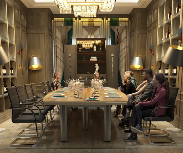 Stół został zaprojektowany z myślą o komfortowej pracy i spotkaniach w gronie około 20 osób. Ostateczna liczba miejsc siedzących zależy jednak od wielkości oraz rodzaju użytych krzeseł – w przypadku smuklejszych modeli przy stole może usiąść nawet nieco więcej osób, natomiast szersze, masywniejsze fotele konferencyjne mogą zmniejszyć liczbę dostępnych miejsc. Dzięki temu stół można łatwo dopasować do indywidualnych potrzeb i charakteru przestrzeni biurowej.