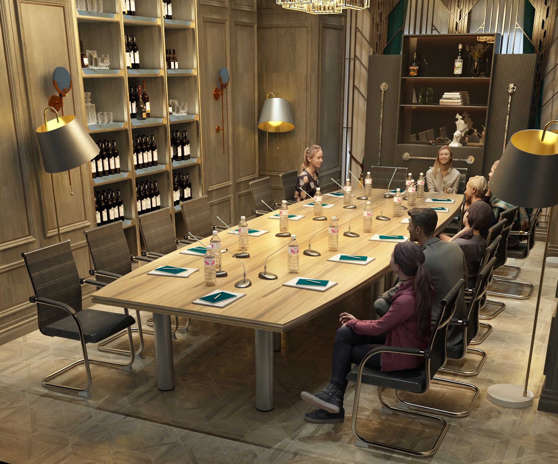 Stół został zaprojektowany z myślą o komfortowej pracy i spotkaniach w gronie około 20 osób. Ostateczna liczba miejsc siedzących zależy jednak od wielkości oraz rodzaju użytych krzeseł – w przypadku smuklejszych modeli przy stole może usiąść nawet nieco więcej osób, natomiast szersze, masywniejsze fotele konferencyjne mogą zmniejszyć liczbę dostępnych miejsc. Dzięki temu stół można łatwo dopasować do indywidualnych potrzeb i charakteru przestrzeni biurowej.