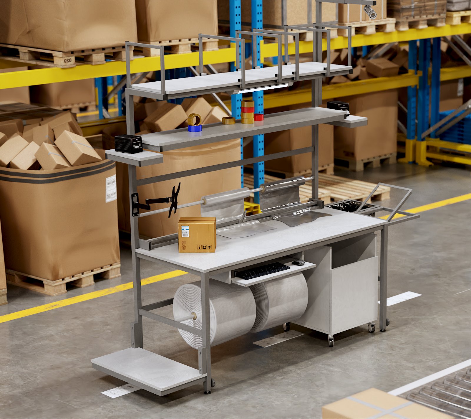 Idealnie sprawdzą się jako stół magazynowy do pakowania w halach produkcyjnych, magazynach, firmach e-commerce czy małych przedsiębiorstwach.