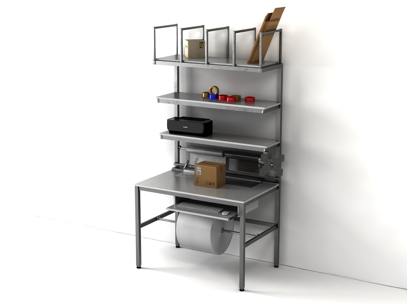 Biurko pakowe to niezastąpione rozwiązanie dla firm poszukujących dobrego, ergonomicznego i funkcjonalnego stanowiska. Nasze stoły pakowe, produkowane są w Polsce, wyróżniają się spawaną solidną konstrukcją, podzieloną dwie części – stół oraz nadstawkę w celu ułatwienia transportu.