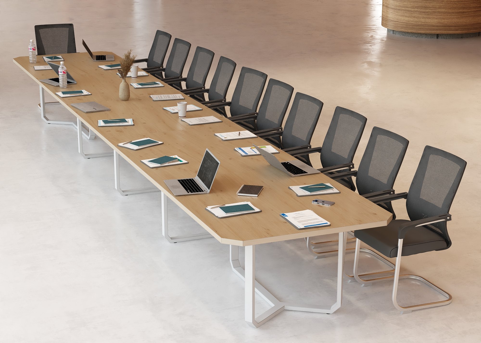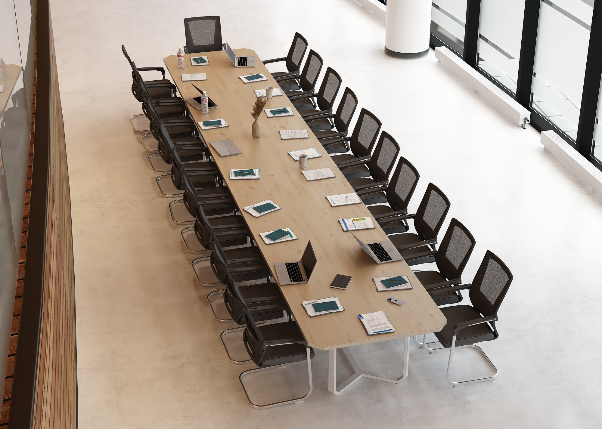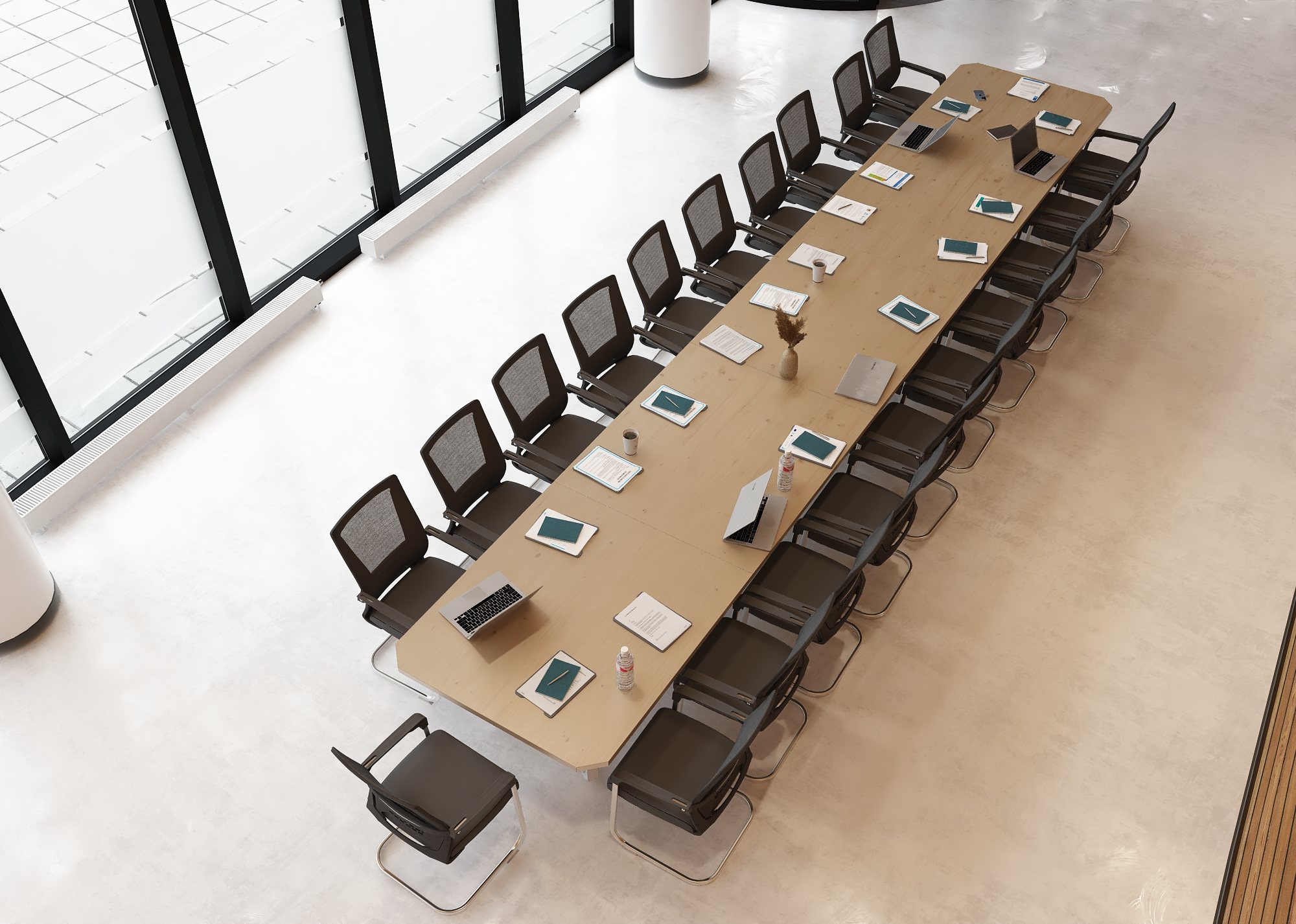 Doskonały na zebrania dla 22 osób, z opcją dostosowania na miarę. Mebel oferuje wygodną powierzchnię dla każdego z uczestników. Poprzez przemyślany wybór siedzeń da się pomieścić nawet większą grupę albo ułożyć bardziej luksusową kompozycję z cięższymi krzesłami. Taka wszechstronność umożliwia wpasowanie całego zestawu w styl Twojego otoczenia.