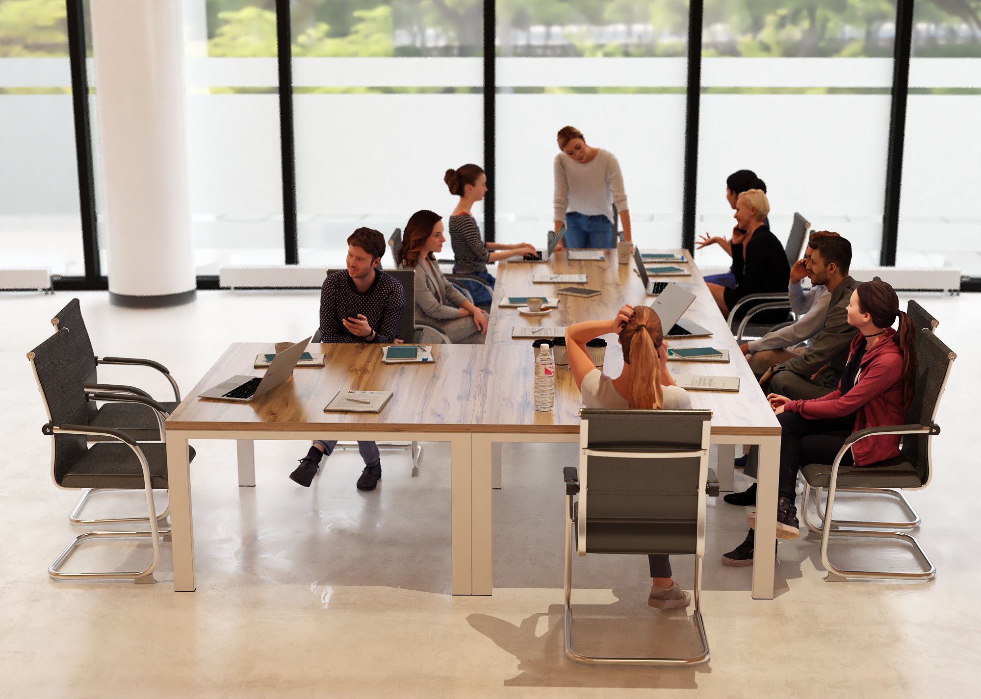 - Personalizacja: Wybierz kolor blatu i stelaża, który najlepiej pasuje do Twojej marki i wystroju biura. Dostosuj **stół konferencyjny na wymiar** do Twoich potrzeb.