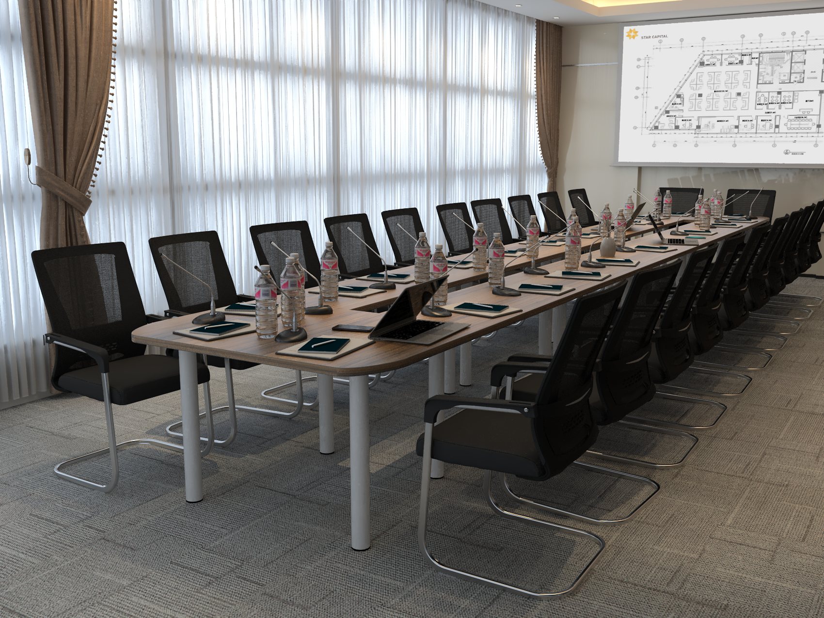 Doskonały na zebrania dla 24 osób, z opcją spersonalizowania pod Twoje potrzeby. Stół oferuje wygodną powierzchnię dla każdego z uczestników. Dzięki starannemu doborowi siedzeń możesz pomieścić nawet większą liczbę gości (zaznaczając smukłe warianty) lub zbudować bardziej prestiżową kompozycję z solidniejszymi fotelami. Taka elastyczność pozwala na idealne zgranie całego zestawu z duchem Twojej przestrzeni. Co więcej, wybór krzeseł o zróżnicowanej wysokości czyni stół uniwersalnym – sprawdzi się w klasycznych, jak i innowacyjnych aranżacjach.