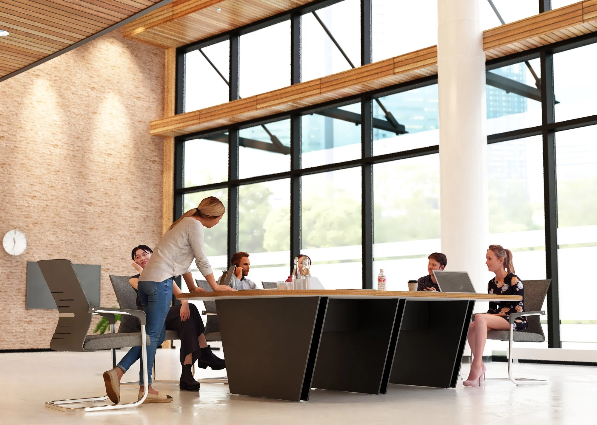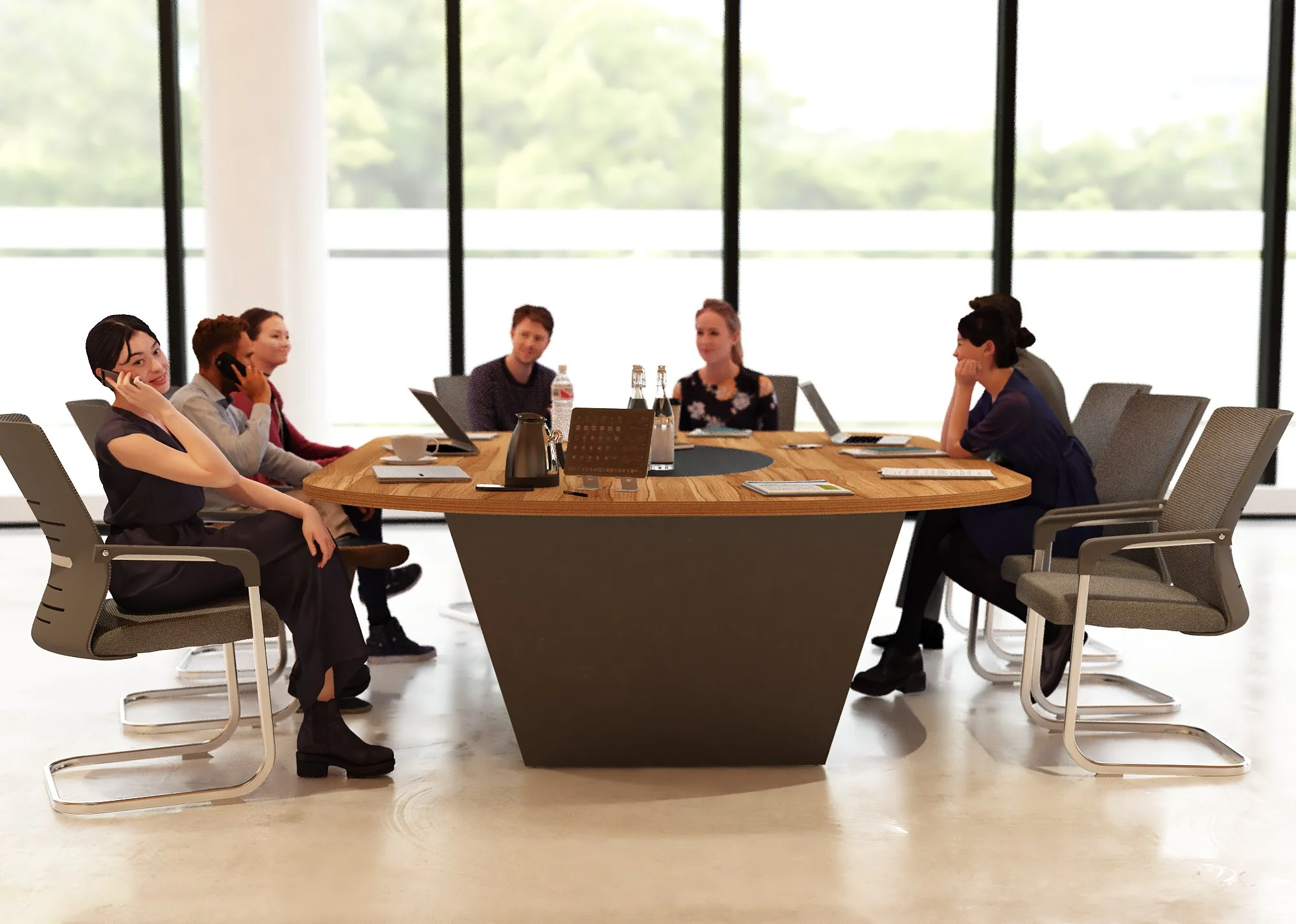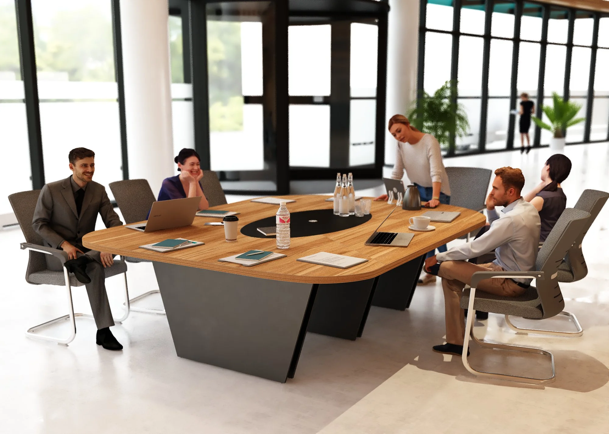 Stół konferencyjny Atria został zaprojektowany z myślą o wygodzie i funkcjonalności, tak aby wspierać sprawną organizację pracy oraz komfort wszystkich uczestników: