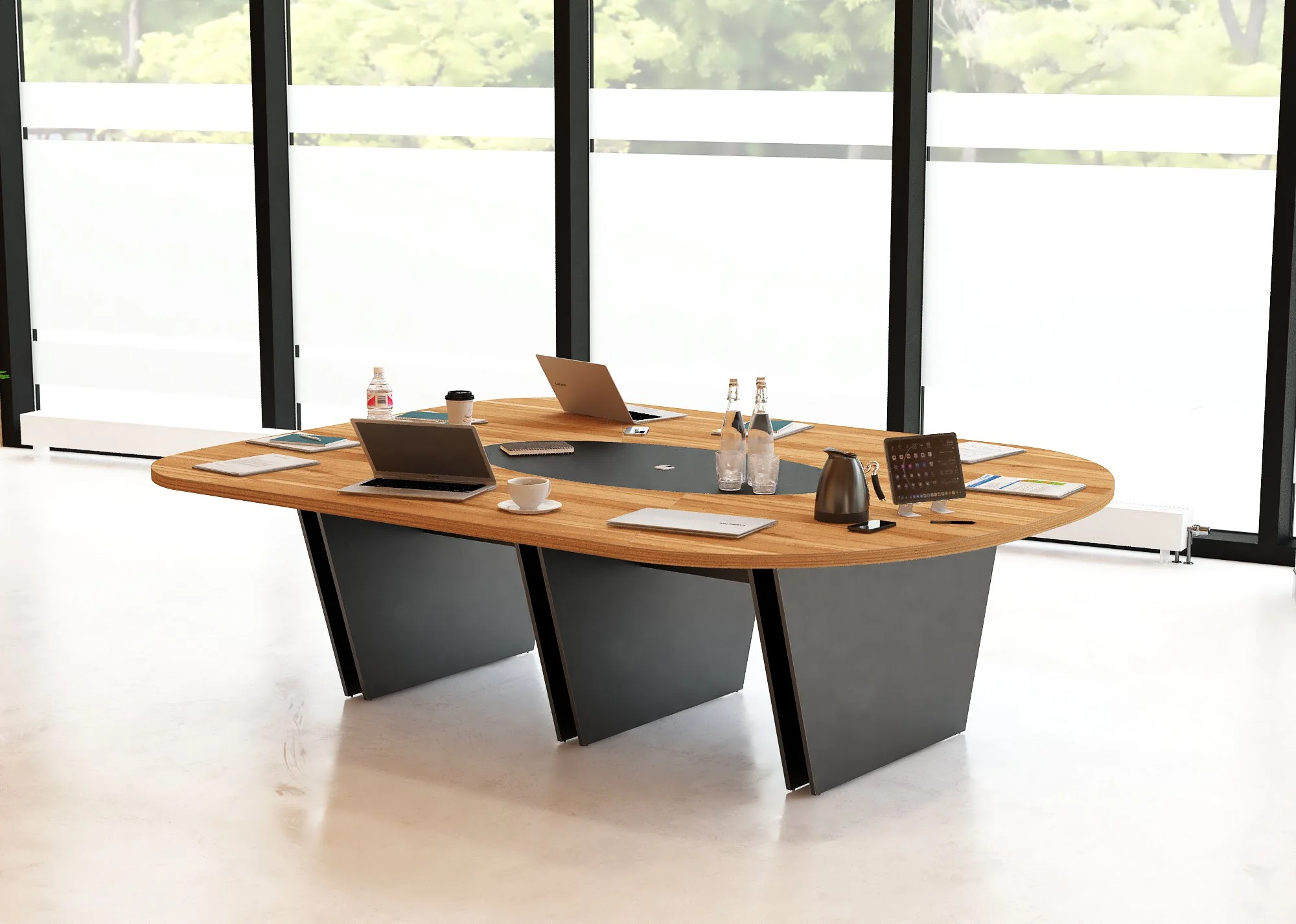 Podstawa stołu konferencyjnego – oparty na grubej trapezowej nodze