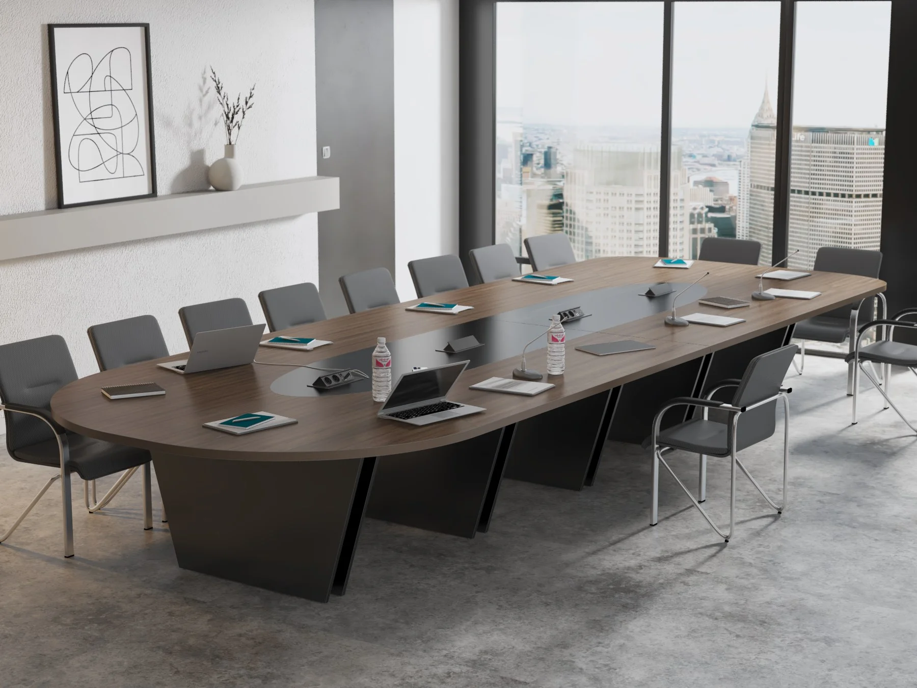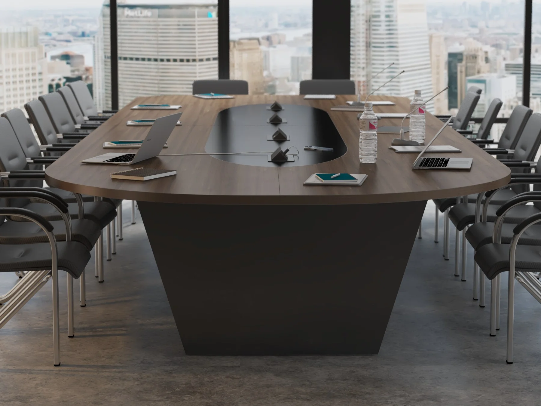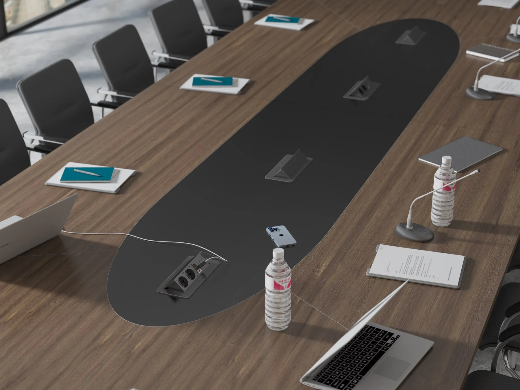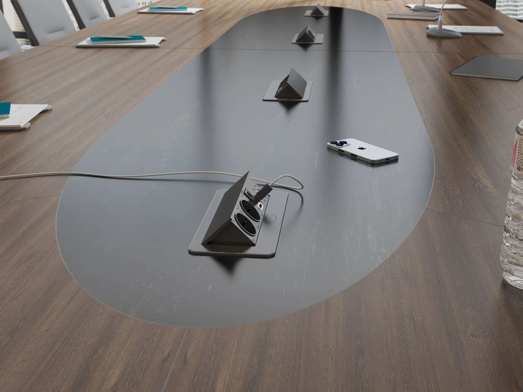 Stół konferencyjny Atria został zaprojektowany z myślą o wygodzie i funkcjonalności, tak aby wspierać sprawną organizację pracy oraz komfort wszystkich uczestników: