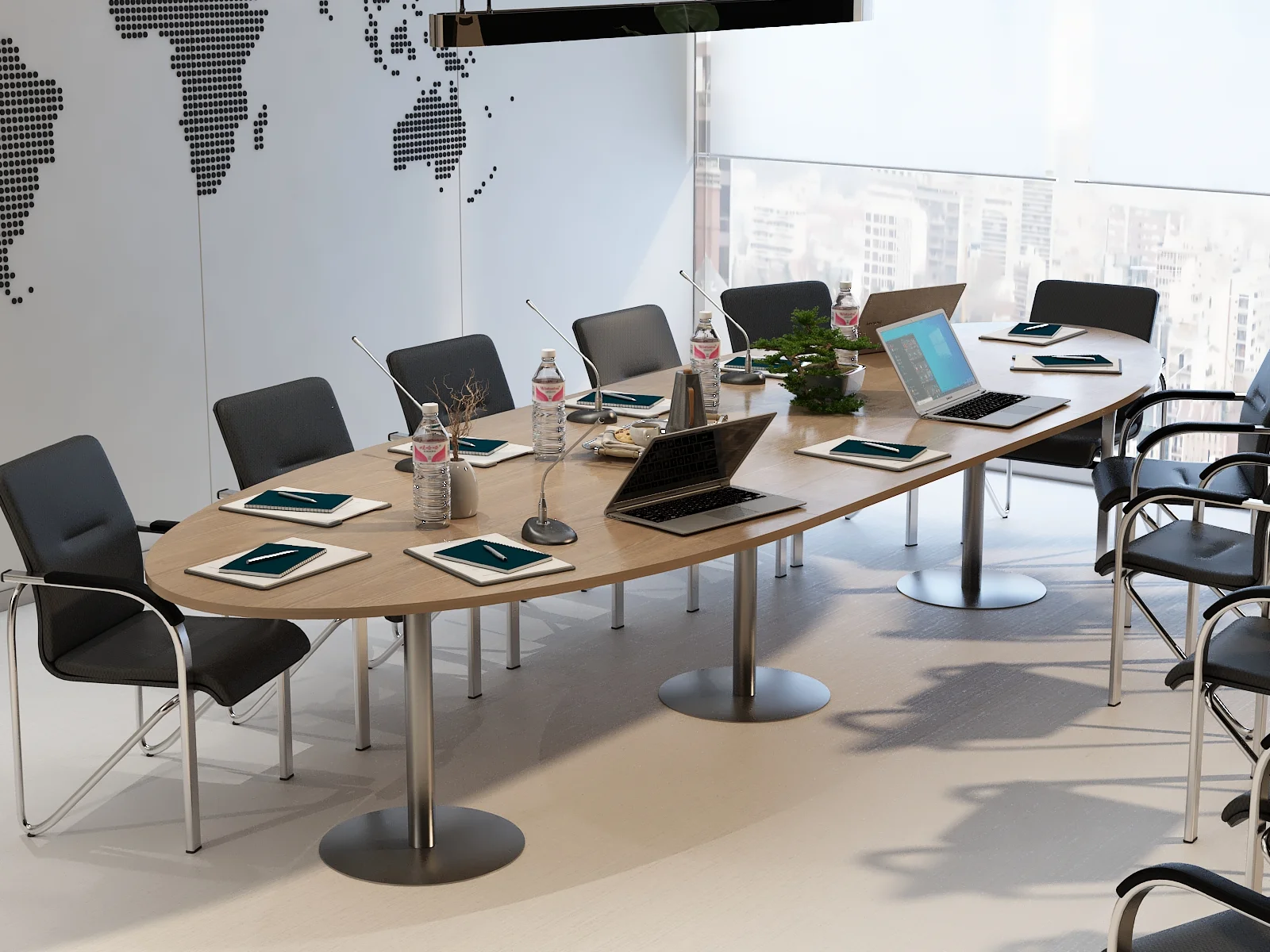 Stelaż stołu konferencyjnego – oparty na grubej okrągłej nodze.