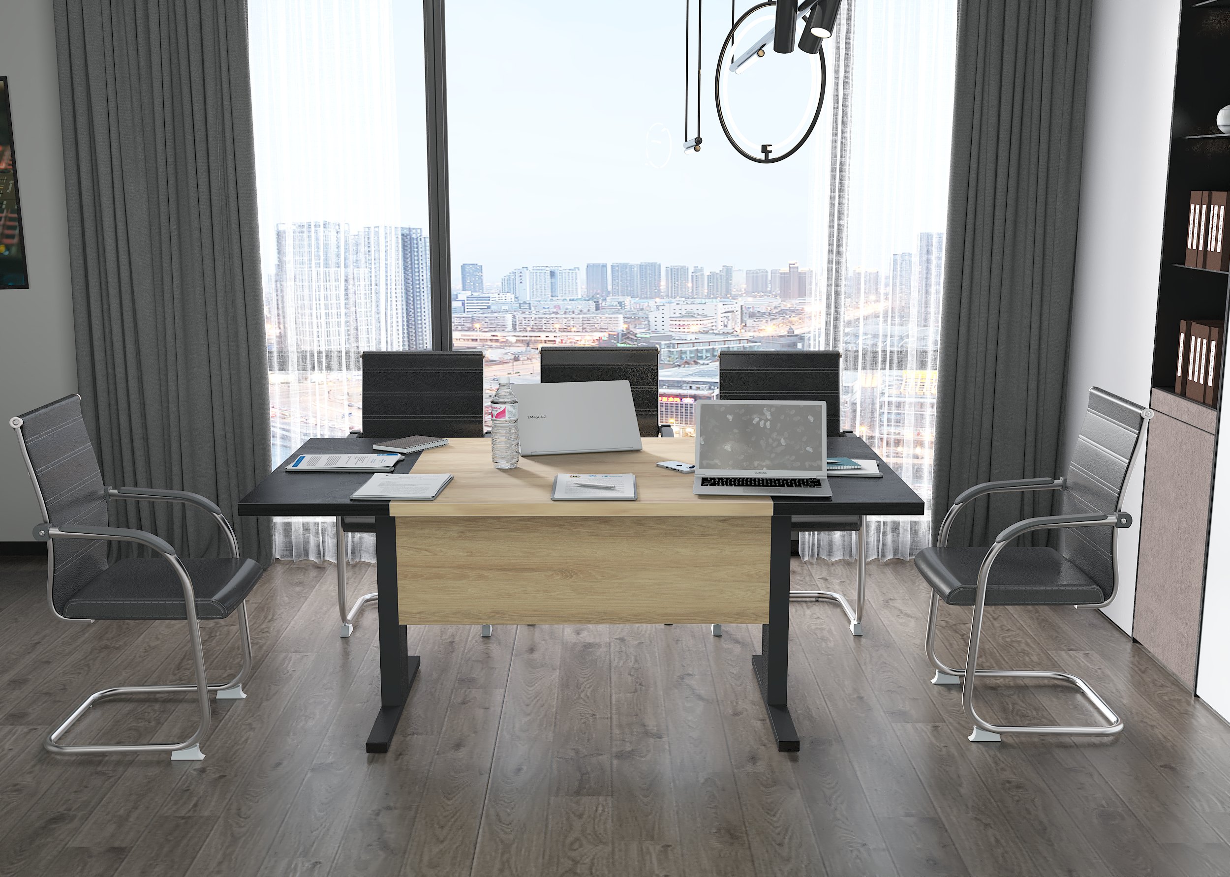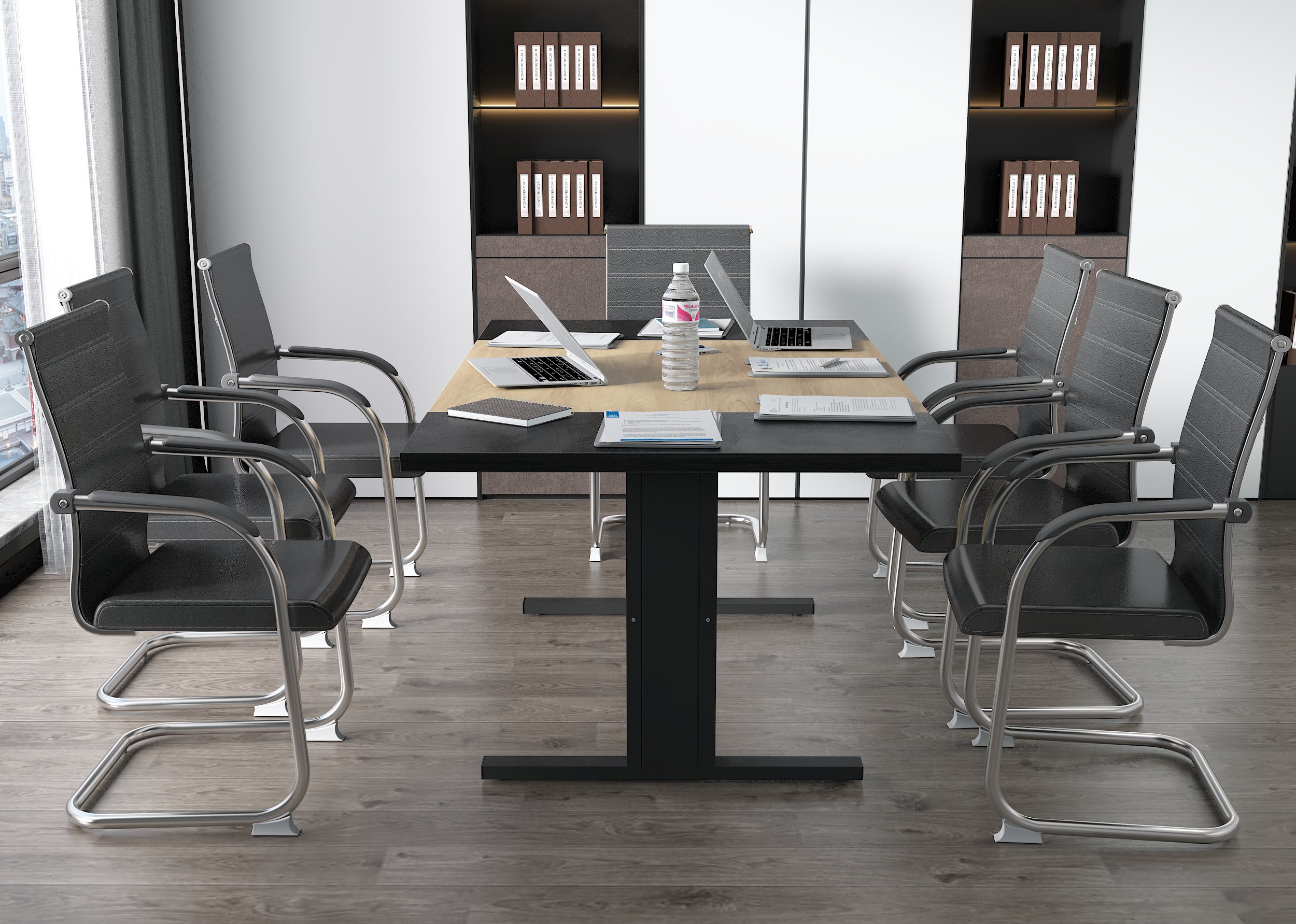 - Metalowa, konstrukcja w formie Litery T gwarantuje doskonałą stabilność stołu, a jej minimalistyczny projekt elegancko prezentuje się w każdej sali konferencyjnej.