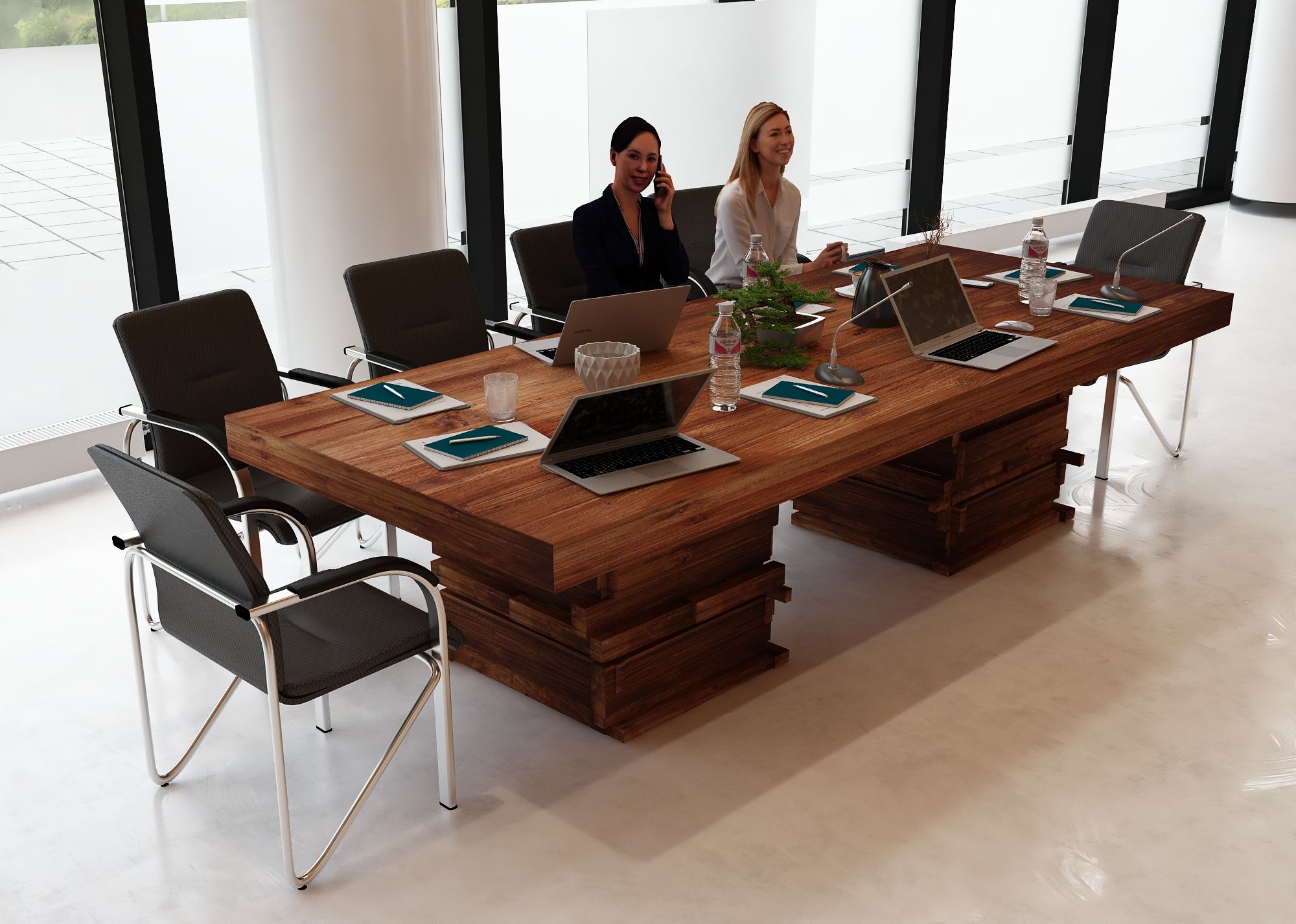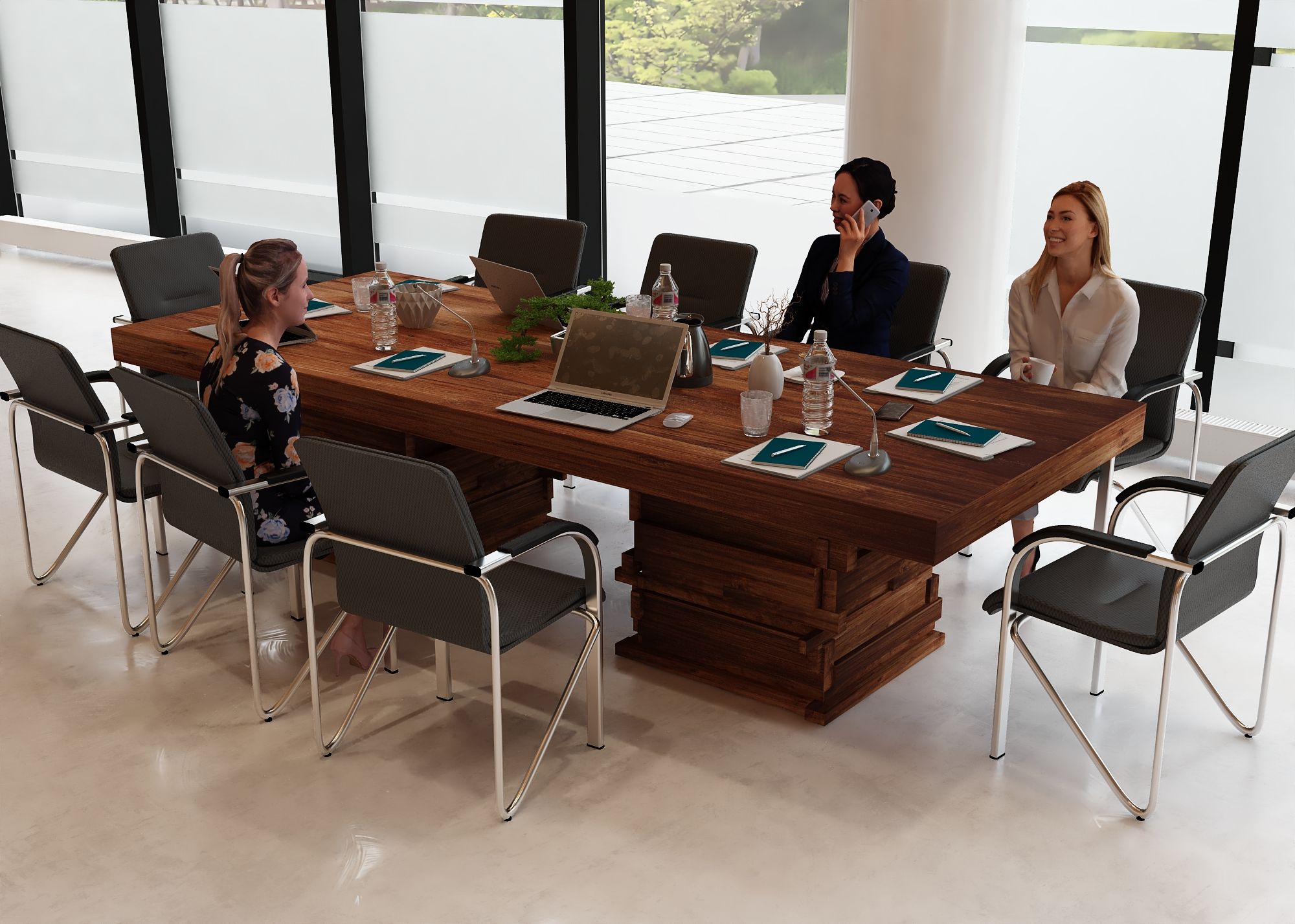 Stół został zaprojektowany z myślą o komfortowej pracy i spotkaniach . Ostateczna liczba miejsc siedzących zależy jednak od wielkości oraz rodzaju użytych krzeseł – w przypadku smuklejszych modeli przy stole może usiąść nawet nieco więcej osób, natomiast szersze, masywniejsze fotele konferencyjne mogą zmniejszyć liczbę dostępnych miejsc. Dzięki temu stół można łatwo dopasować do indywidualnych potrzeb i charakteru przestrzeni biurowej.