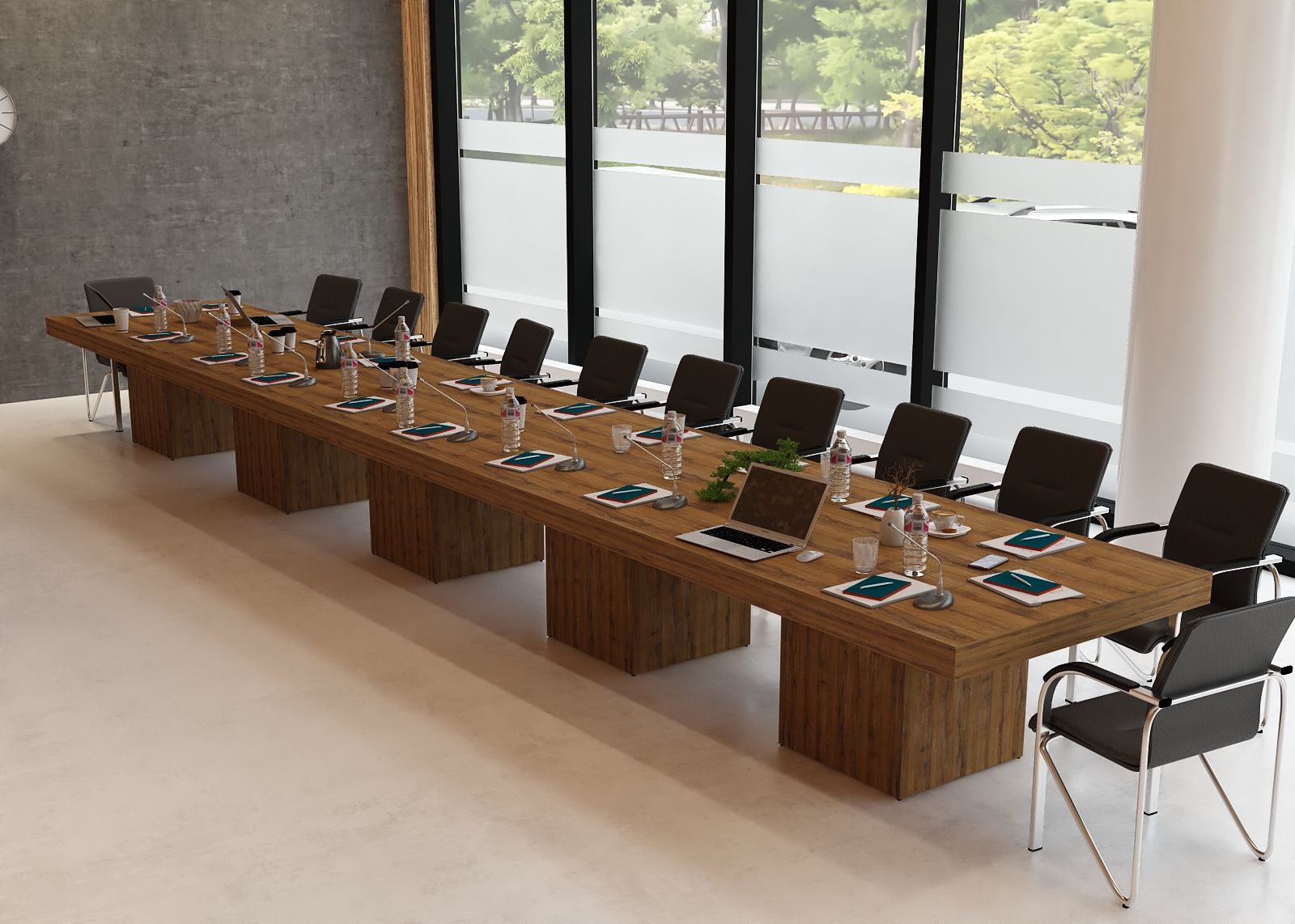 Stół Camelia został zaprojektowany z myślą o wygodzie i funkcjonalności, tak aby wspierać sprawną organizację pracy oraz komfort wszystkich uczestników: