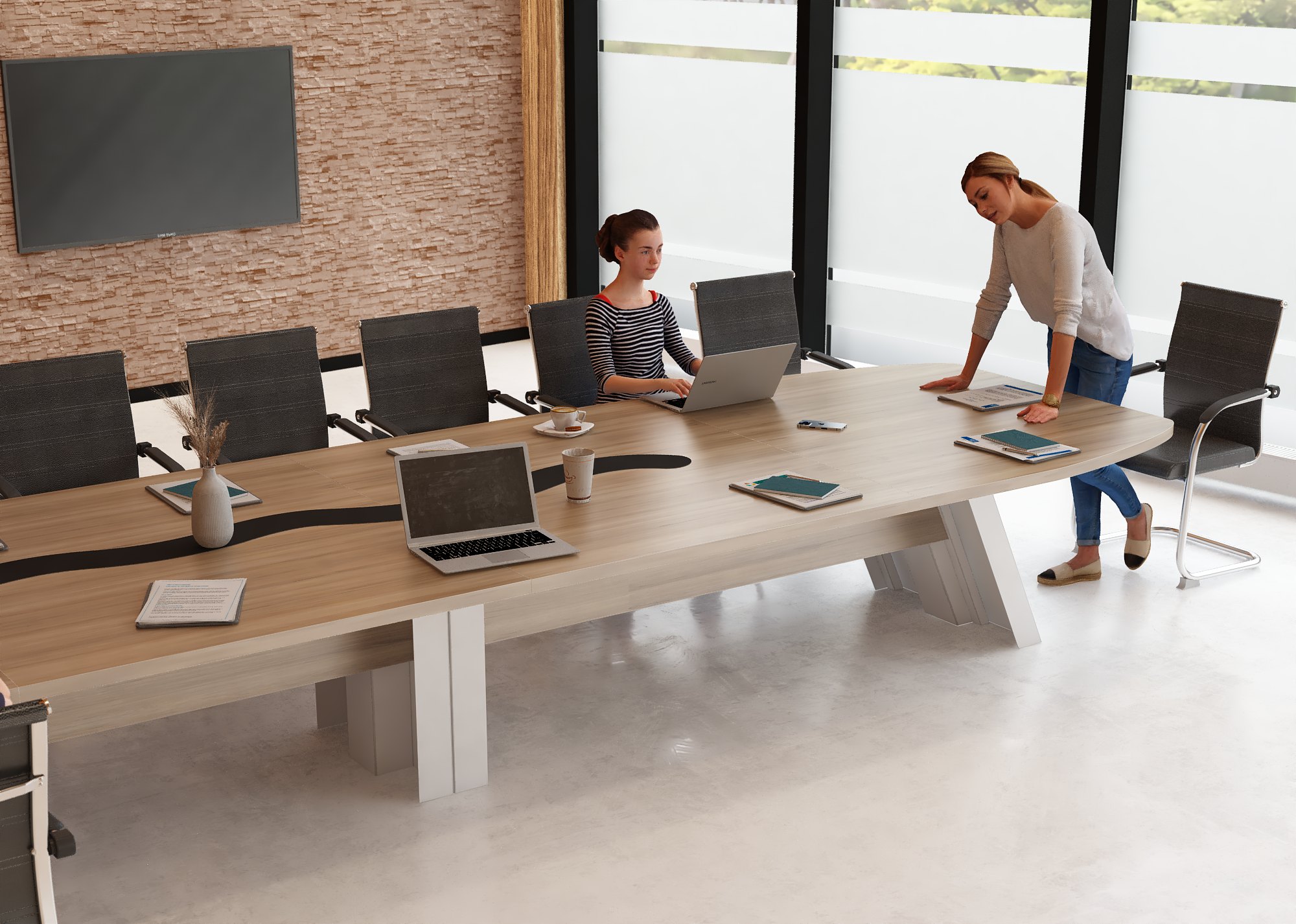 • Funkcjonalność: Dzięki opcjonalnym gniazdkom i systemowi zarządzania kablami, spotkania są płynne i estetyczne.