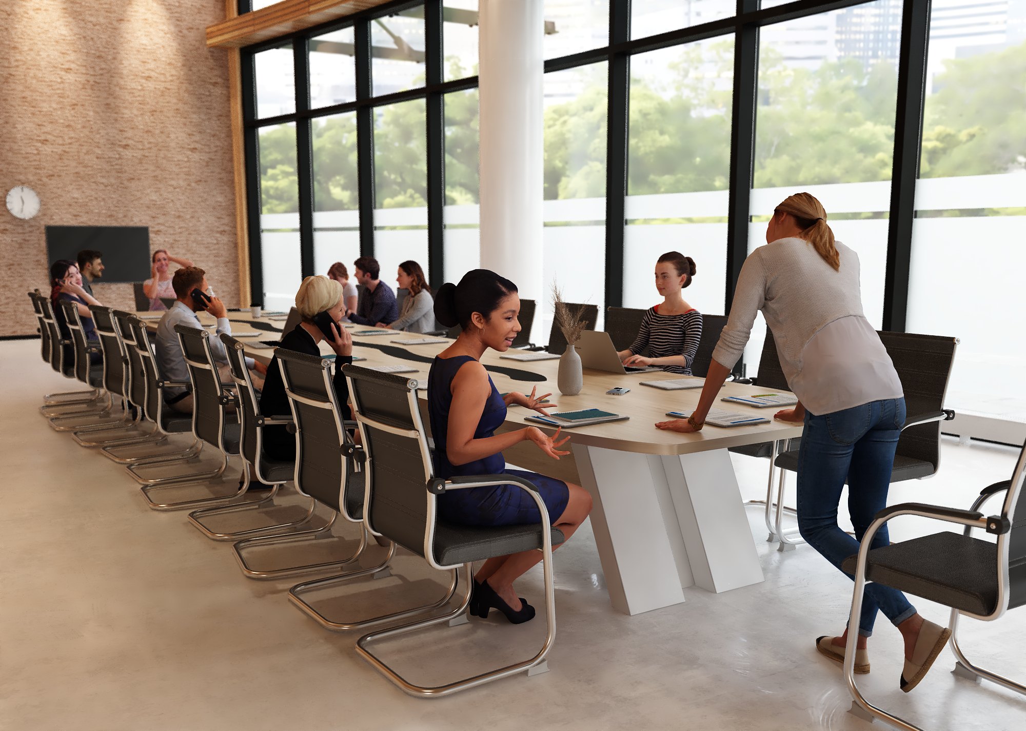 Funkcjonalność: Dzięki opcjonalnym gniazdkom i systemowi zarządzania kablami, spotkania są płynne i estetyczne.