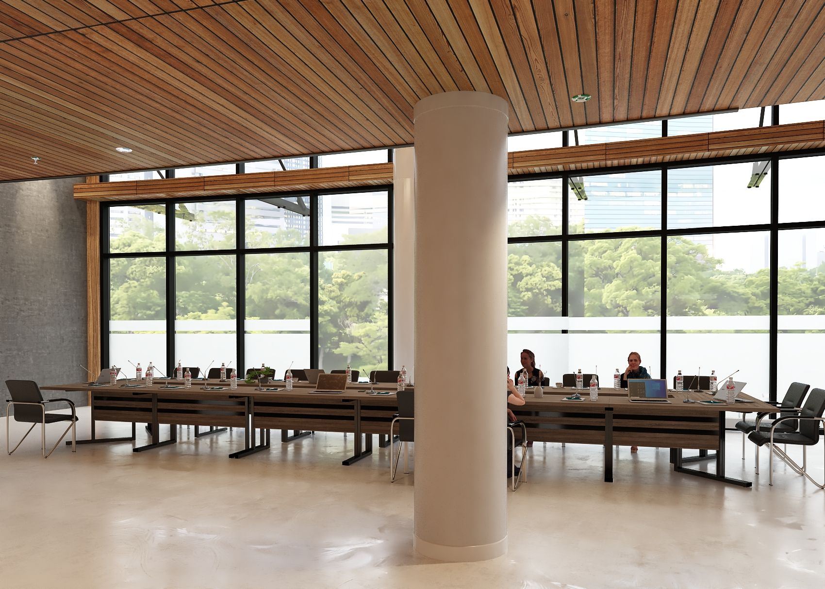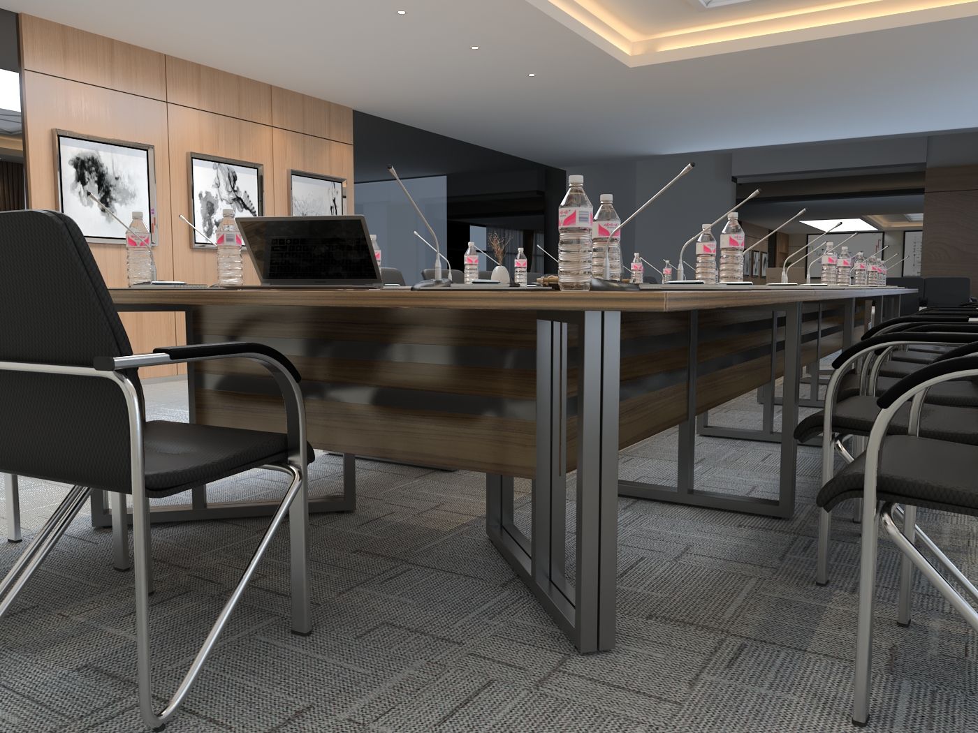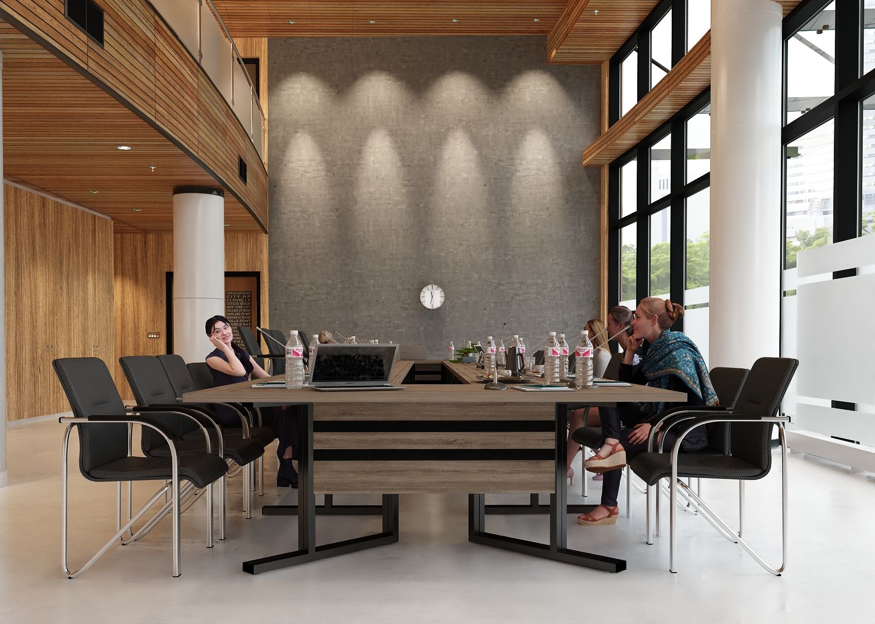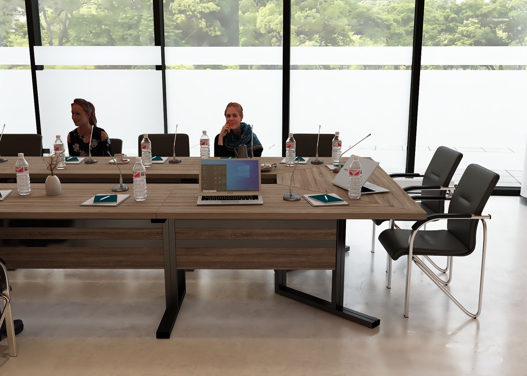 Elegancki stelaż w połączeniu z minimalistyczną bryłą blatu ze ściętymi krawędziami nadaje wnętrzu profesjonalny i prestiżowy charakter, doskonale integrując się z różnymi stylami aranżacji.