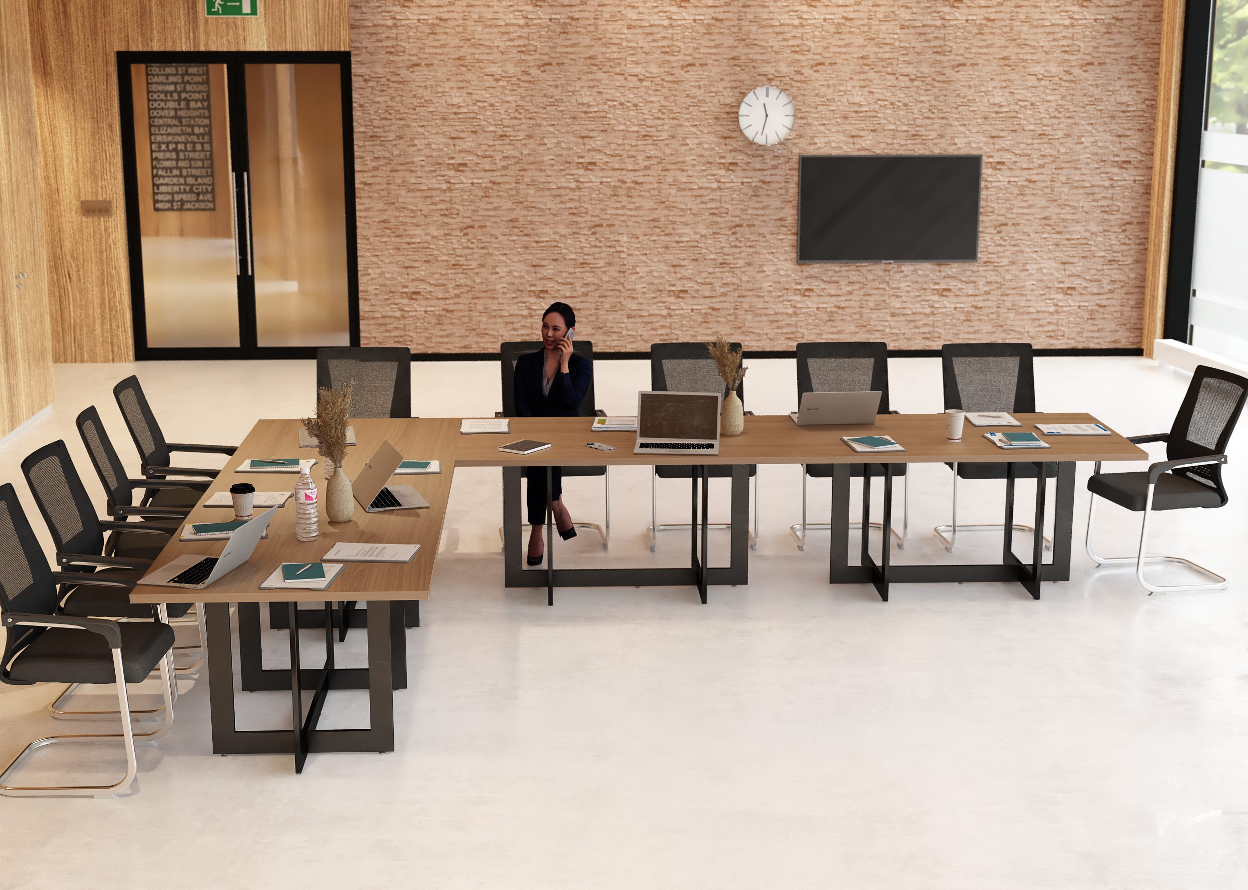 Elegancki stelaż w połączeniu z prostą bryłą blatu ze ściętymi rogami nadaje wnętrzu profesjonalny i prestiżowy charakter, doskonale wpasowując się w każde otoczenie.