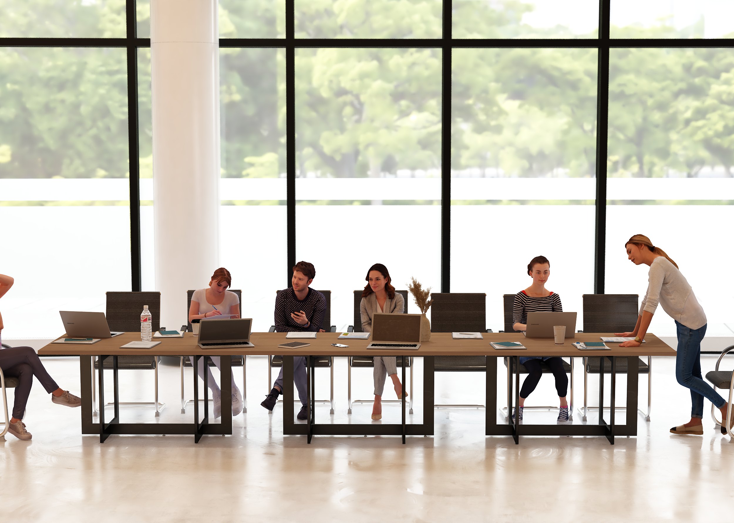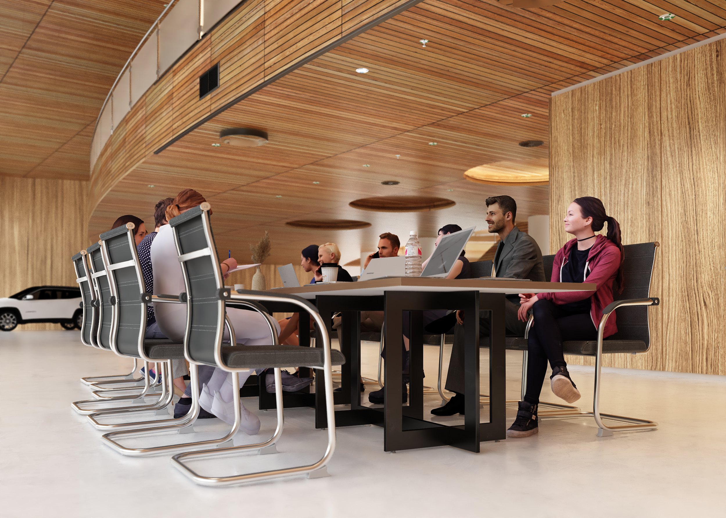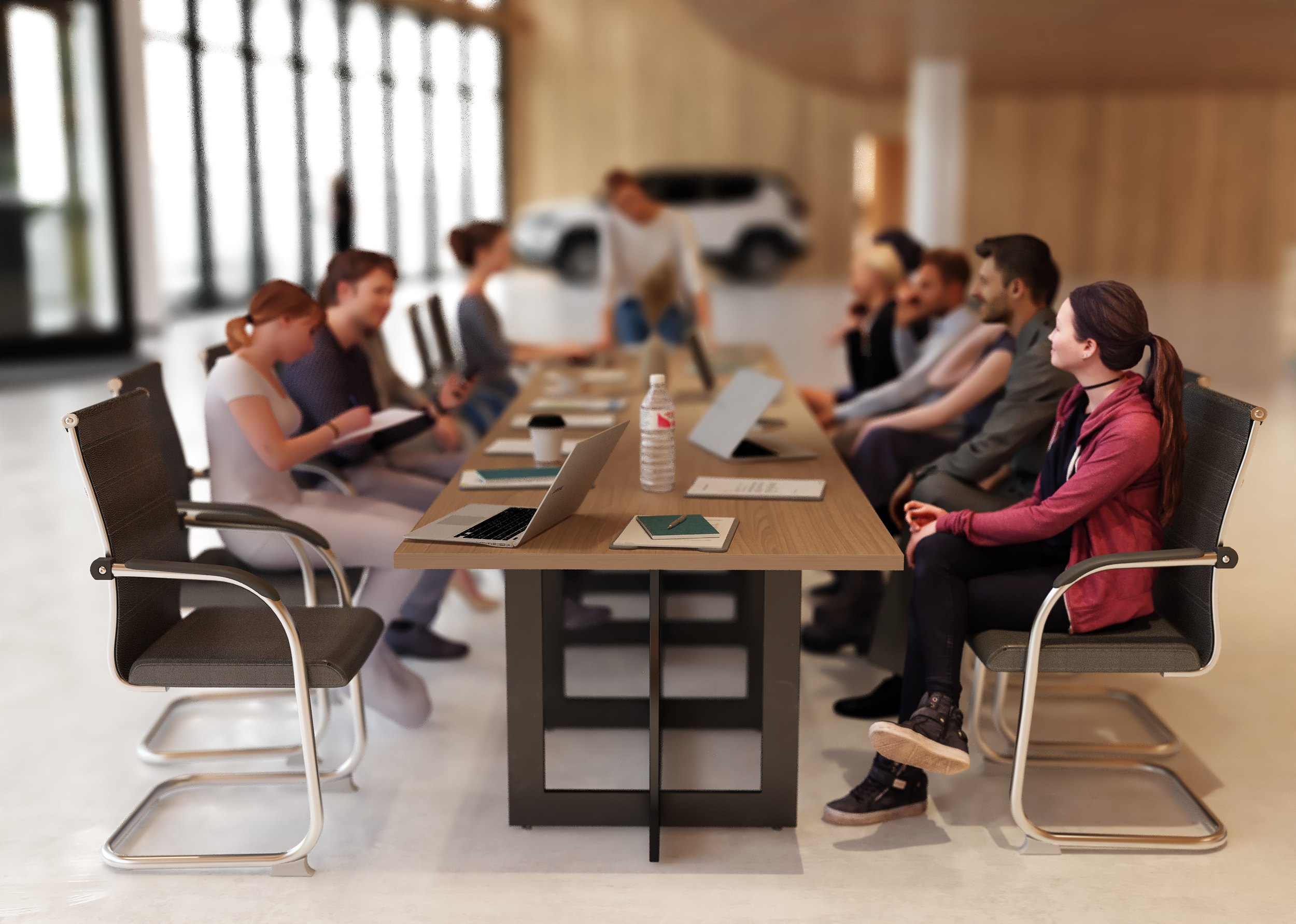 Stół Swing łączy funkcjonalność z elegancją, czyniąc go doskonałym rozwiązaniem dla sal konferencyjnych, ośrodków dydaktycznych i nowoczesnych przestrzeni otwartych.