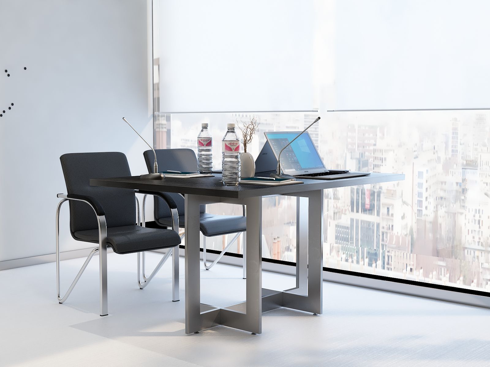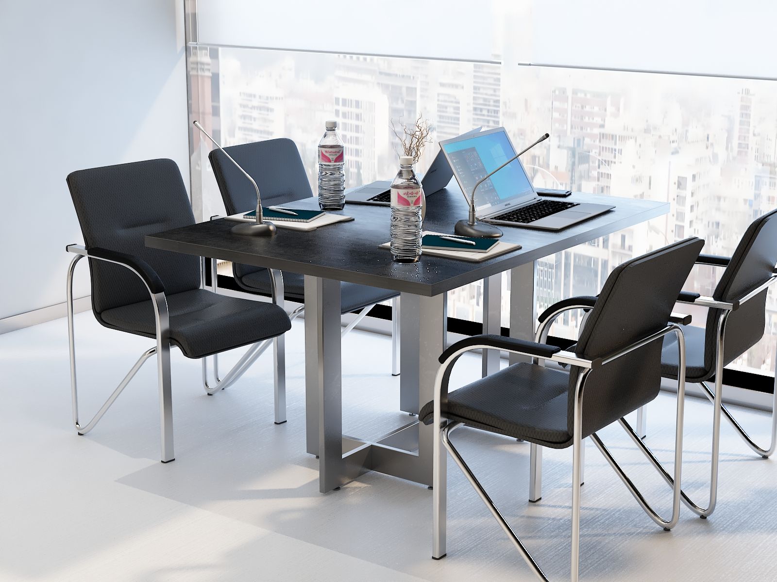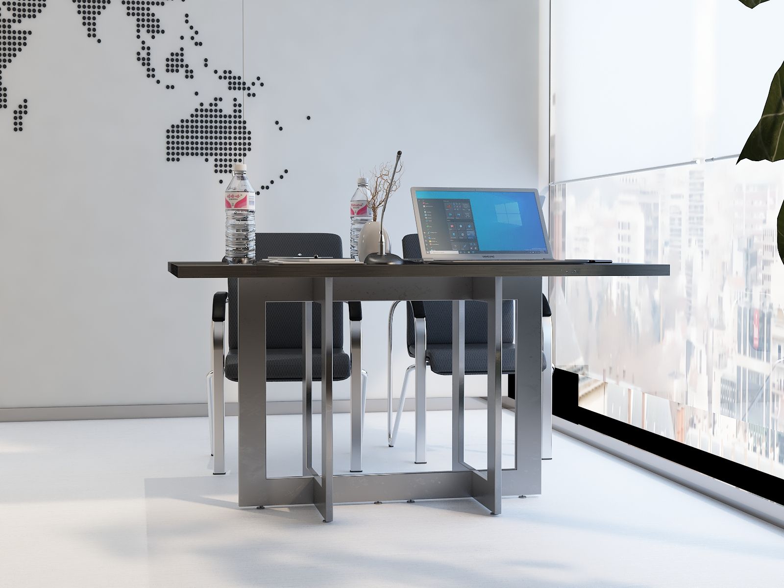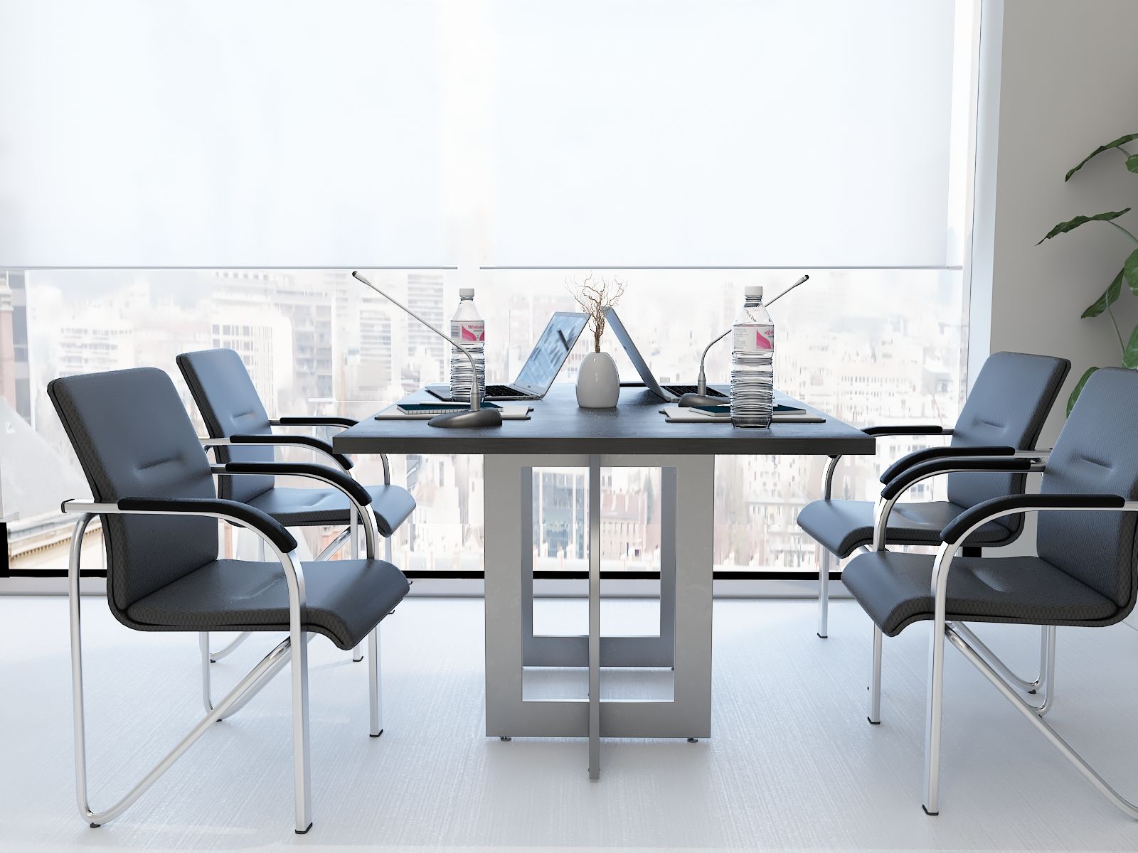 Elegancki stelaż w połączeniu z prostą bryłą blatu ze ściętymi rogami nadaje wnętrzu profesjonalny i prestiżowy charakter, doskonale wpasowując się w każde otoczenie.